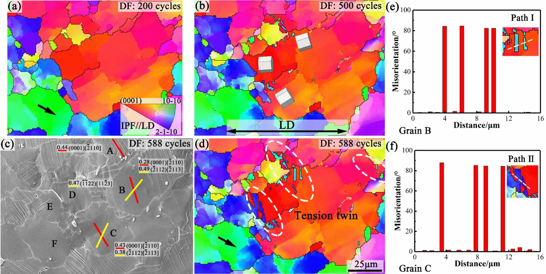 1. Background introductionNear-α high-temperature titanium alloys are key structural materials for the manufacture of aero-engine rotation components. The compressor discs or blisks are held at peak stress for a period of time, resulting in a fatigue life that is less than the conventional low-cycle fatigue life, a phenomenon known as dwell fatigue. In service under stringent conditions, (0001...