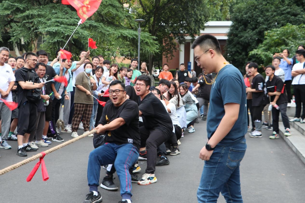开幕式结束后,拔河比赛正式开赛,参赛队伍按照党支部、课题组划分为9组,采取现场抽签、三局两胜、两两对决的规则进行。随着一声哨响,在震耳欲聋的呐喊助威声中比赛开始,双方队伍降低重心、紧握绳子,以“一二一二”的节奏奋发用力。各队伍齐心协力,裁判员公平负责认真,拔河比赛顺利进行。