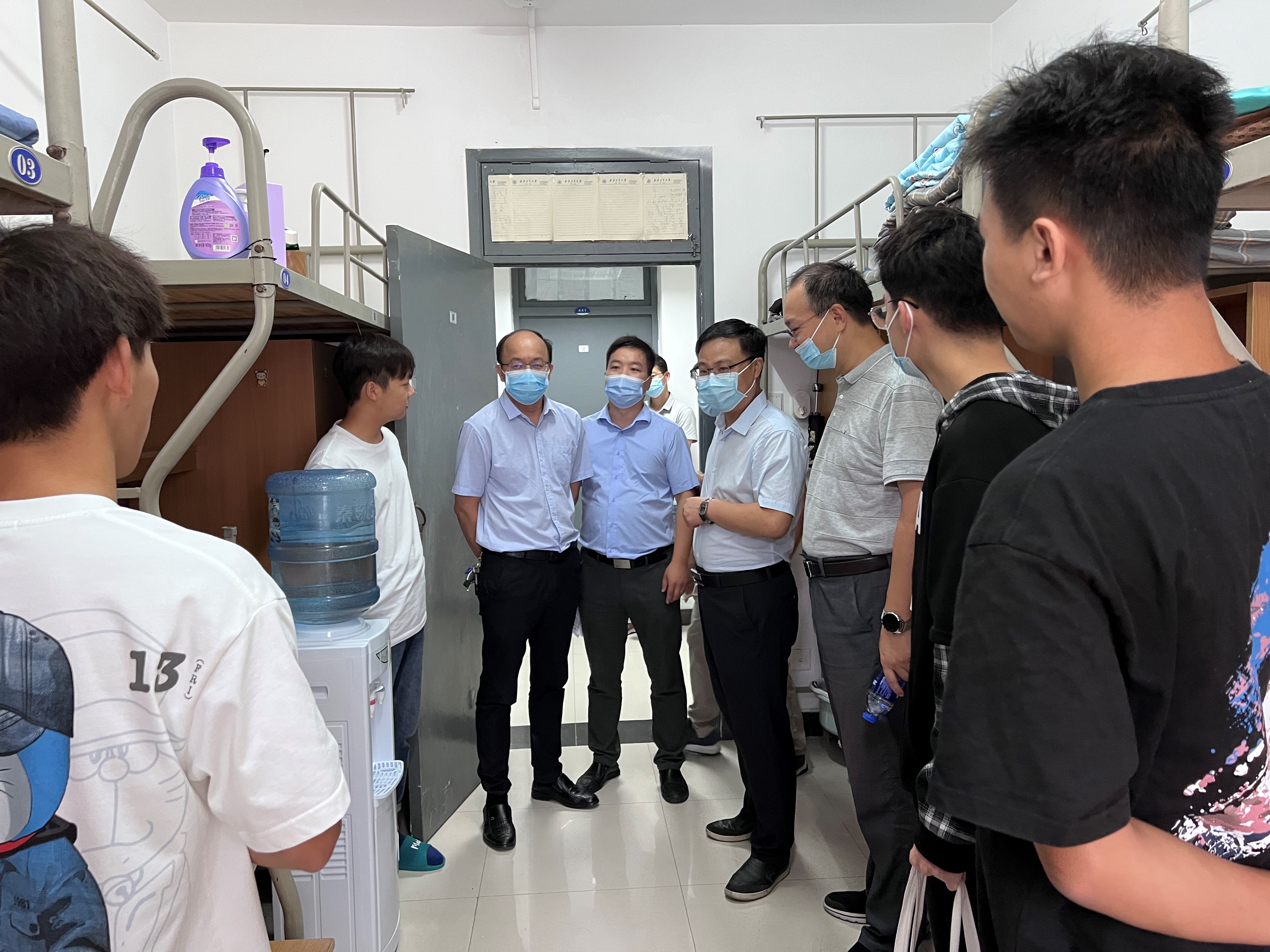 在宿舍,学院领导、老师与同学们亲切交谈,详细了解同学们在校学习、生活情况以及存在的困难和问题,并叮嘱同学们初来大学又值疫情防控的关键时期,务必做好个人防护、遵守学校纪律,展现大学生的自律担当。同时希望同学们在大学期间以学业为重,保持学习热情,追求德智体美劳全面发展,生活中要友好相处,互帮互助,共同进步,珍惜大学时光,让大学生活过得充实而有意义。