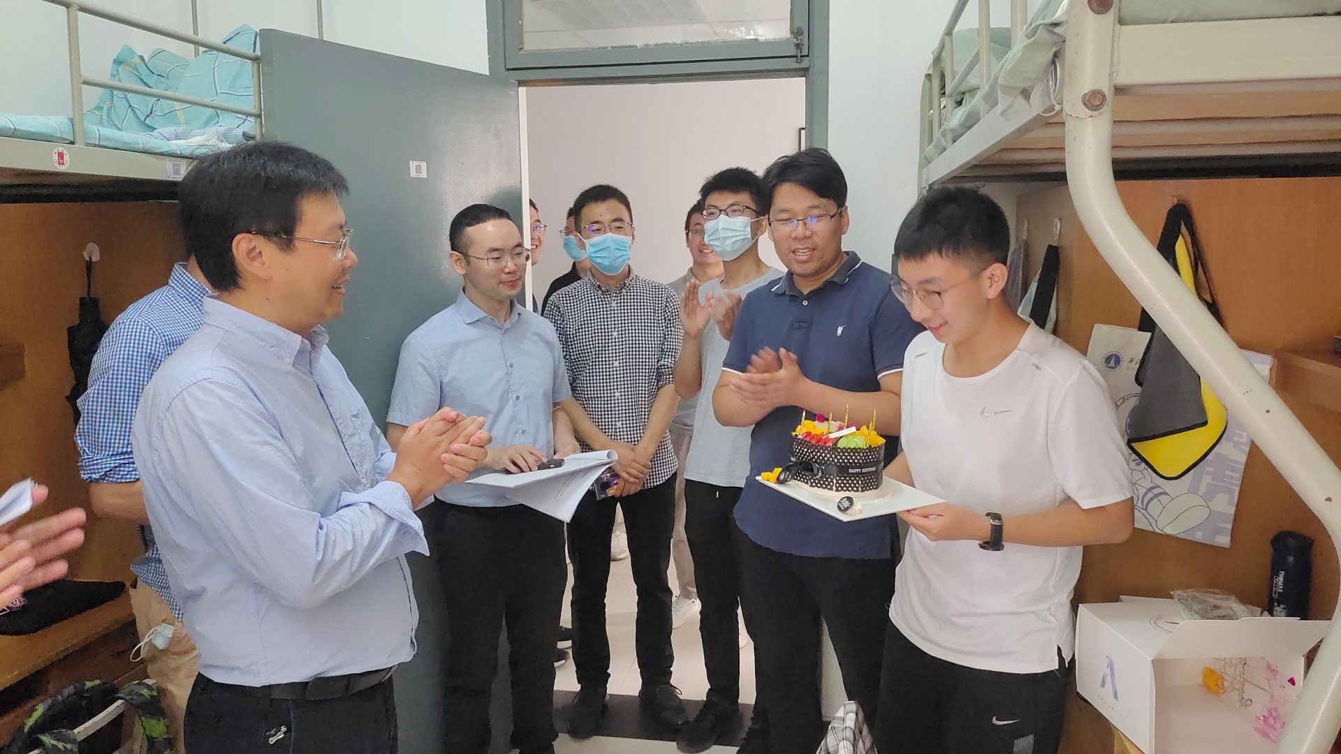 中秋佳节之际,虽然同学们不能在家团圆,但学院领导、老师为每一位新生送上了节日祝愿和中秋月饼,希望他们可以在学校同样感受到家的温暖。此外,学院还特意给当天过生日的两位新生精心准备了生日蛋糕并送上了祝福,勉励同学们好好学习,努力奋斗,将来回馈家庭、回报社会。
