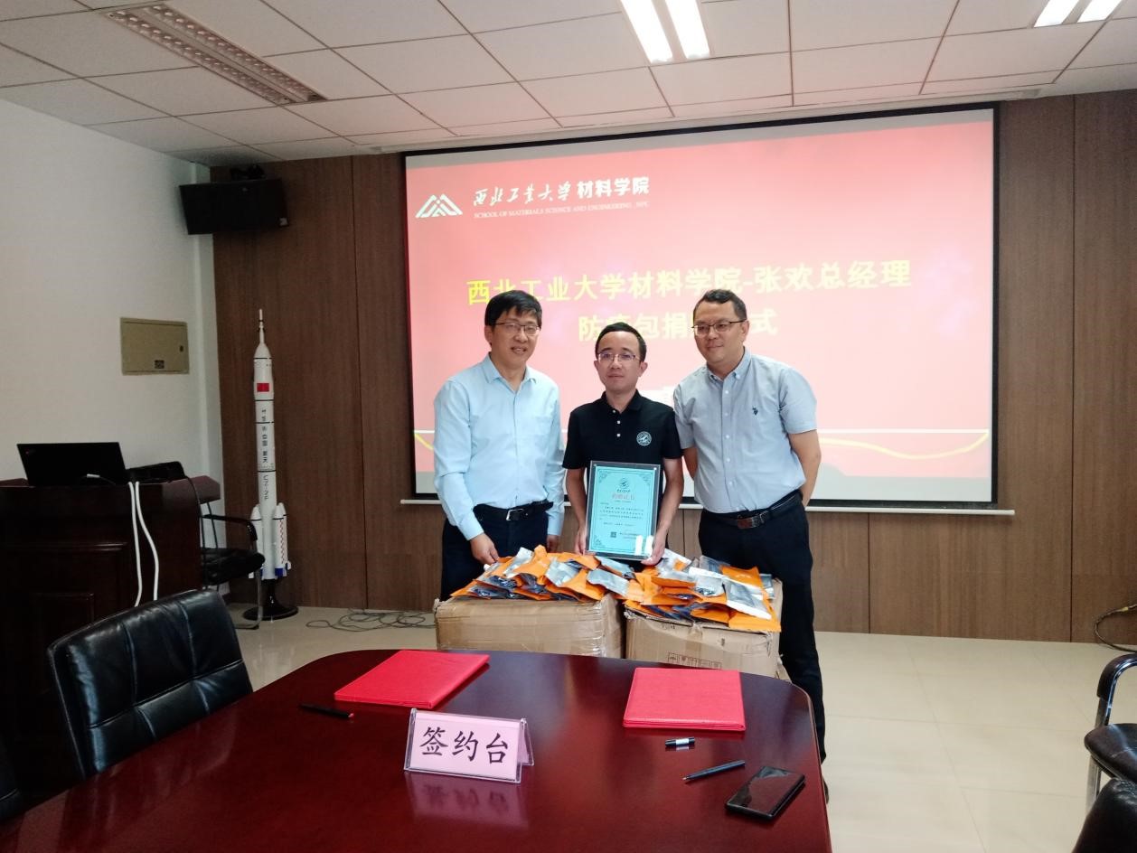 与中陕核生态环境江苏分公司张欢总经理在公字楼322会议室顺利举行了防疫包捐赠仪式。学校教育基金会秘书长张英群、做爱色情片