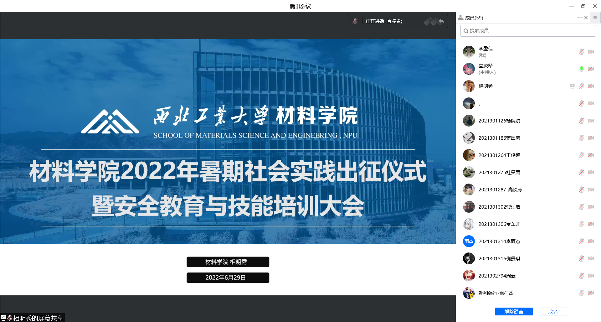 会议最后,李治军老师再一次向同学们强调个人安全、教师对接和疫情防控等多方面的注意事项,希望同学们好好把握此次社会实践的良好机会,深入基层社会及企业,增强自身才干与本领,并预祝同学们此次社会实践取得圆满成功。