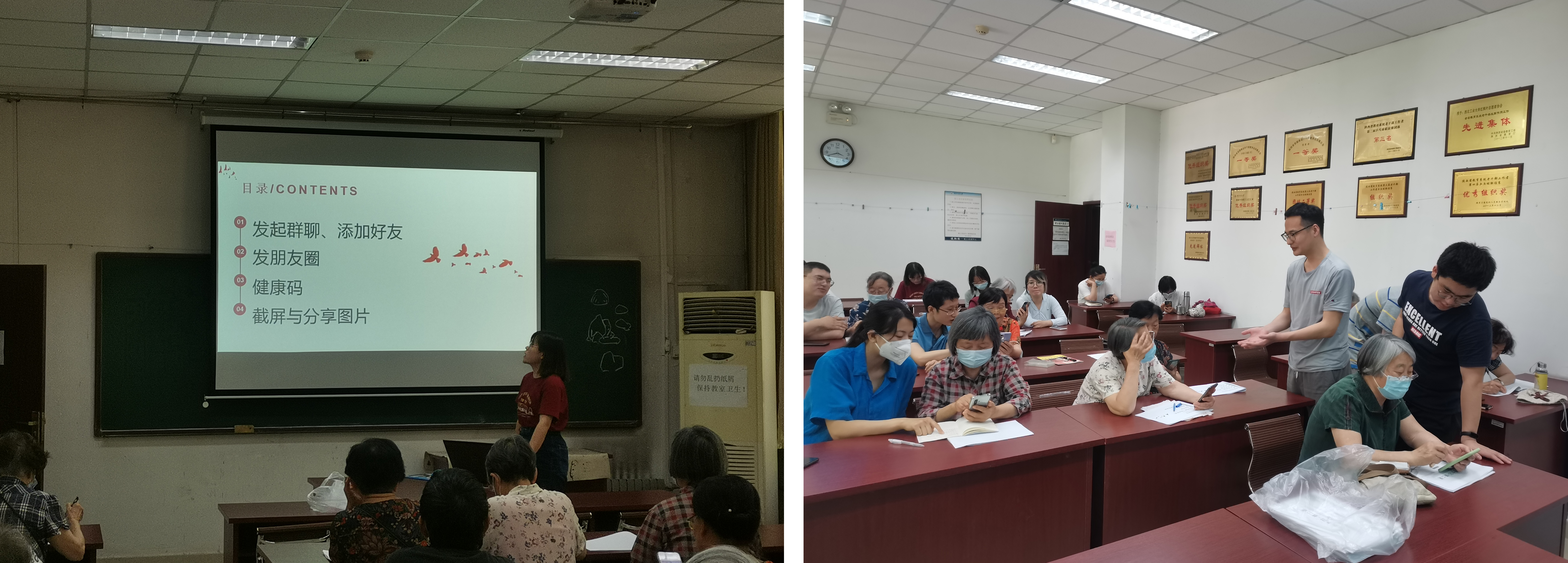 6月15日,功能材料第二研究生党支部联合民航学院2020级硕士生党支部联合举办“桃李飘香——青春伴夕阳”的活动,再次为老教师讲解手机的使用功能。