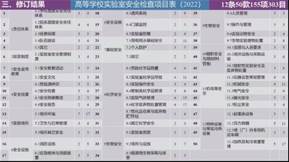 本次线上培训主要从两个大的方面展开。一是对《高等学校实验室安全检查项目表(2022年)》条目的解读;二是邀请两位高校专家对本校在实验室安全管理中的经验做法进行分享交流。首先清华大学实验室管理处副处长艾德生对《高等学校实验室安全检查项目表(2022年)》主要从责任体系、规章制度、安全宣传教育、安全检查、实验场所、安全设施、基础安全、化学安全、生物安全、辐射安全与核材料管制、机电等安全、特种设备与常规冷热设备等方面进行了深入细致的讲解。特别对高校检查中易出现的各种安全隐患进行分类重点讲解。接着苏州大学实验室与设备管理处处长魏永前就《实验室安全管理体系的构建与实施》进行了分享交流;中国矿业大学安全科学与应急管理研究院院长李爽对《双重预防机制在实验室安全管理中的应用》从为什么实验室要做双重预防、双重预防怎么控制实验室风险、实验室如何做双重预、实验室安全双重预防机制建设展望等四个方面展开了深入细致的交流。
