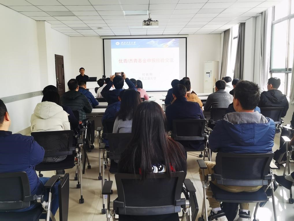 付前刚首先从近10年各兄弟高校的基金资助情况方面介绍了西工大目前人才类基金申请的现状和面临的挑战,指出新形势下机遇和调整并存,希望各位青年教师不断努力,奋力追赶超越。随后,付前刚结合自己申请基金项目的经历,从申请书摘要、主要学术业绩、创新点凝练、拟开展的工作等方面向参会教师毫无保留地分享了自己的经验。付前刚表示,基金与面上基金在撰写思路上有很大区别,申请书注意要突出自己的竞争优势,成果要“顶天立地”,要充分利用西工大在国防方面的优势,以国防应用背景提炼自身优势,补充短板。付前刚同时以自己的基金申请书为例,详细介绍了每一部分撰写的思路及重点。