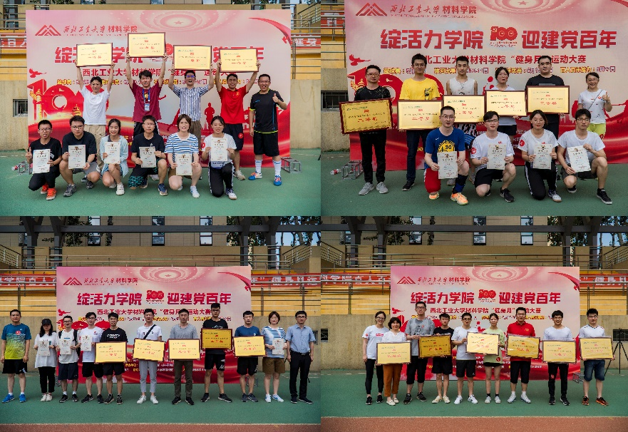 在赛后进行的“绽活力学院,迎建党百年”健身月运动大赛闭幕式上,学院党委副书记罗皎、副院长王洪强、部门工会主席杨舜、团委书记李治军、组织员廖莎莎等分别为健身月活动中羽毛球赛、拔河比赛和百人百米接力赛获奖个人和单位颁奖。至此,本届健身月系列活动圆满成功,顺利结束。