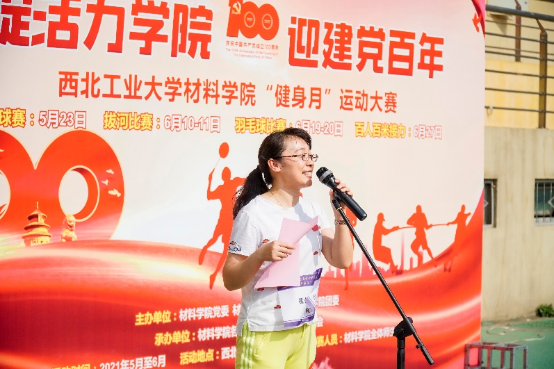 全场高唱国歌之后,罗皎副书记首先致辞。她指出,在中国共产党成立100周年之际,我们用贴近师生的形式开展系列文体活动,丰富业余生活,增强身体素质,旨在引导广大师生坚定听党话、跟党走的决心和信心。希望全院师生以此为契机,不忘初心、牢记使命,担当实干、砥砺前行,为奋进“双一流”再立新功!