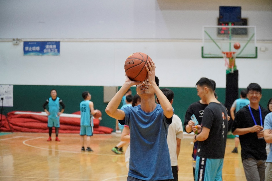 第二场比赛由博士联队对阵教职工联队,比赛过程中双方运动员个个动作连贯,配合默契,拼抢用心,投篮准确,现场氛围紧张激烈。场外拉拉队员的阵阵喝彩更是将现场紧张刺激的氛围烘托到了高潮。最终,博士联队更胜一筹,取得胜利。