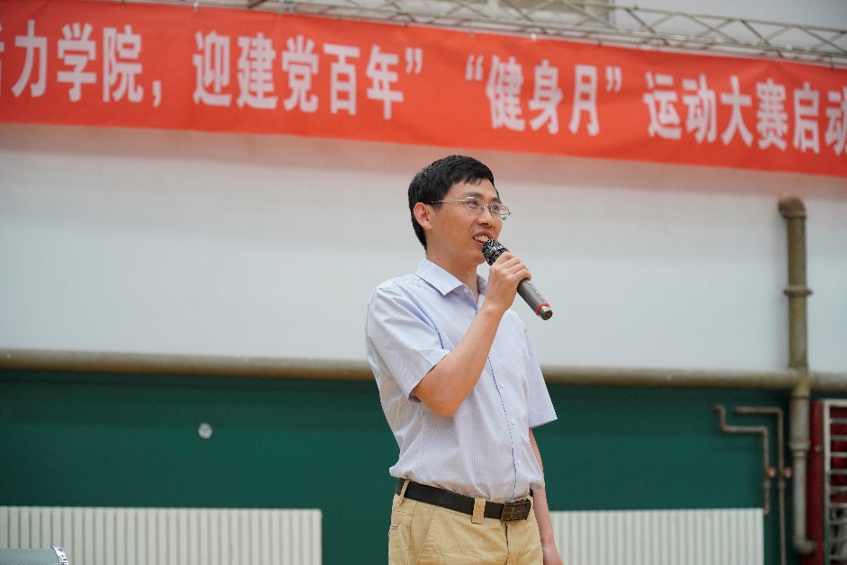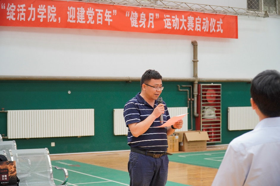 “绽活力学院,迎建党百年”“健身月”运动大赛的通知》,提出5月下旬至6月下旬期间,拟在全院范围内开展运动大赛,包括篮球、乒乓球、拔河、羽毛球、接力赛等一系列体育及趣味活动,鼓励同学们积极走出教室、走出宿舍、走出教研室,通过运动迎接建党100周年。付前刚书记致开幕词并宣布比赛开始。他指出,希望通过“健身月”运动大赛丰富全院师生的课余生活,增强师生身体素质,锻炼师生的团队协作能力,培养师生的集体荣誉感,促进我院精神文明建设。
