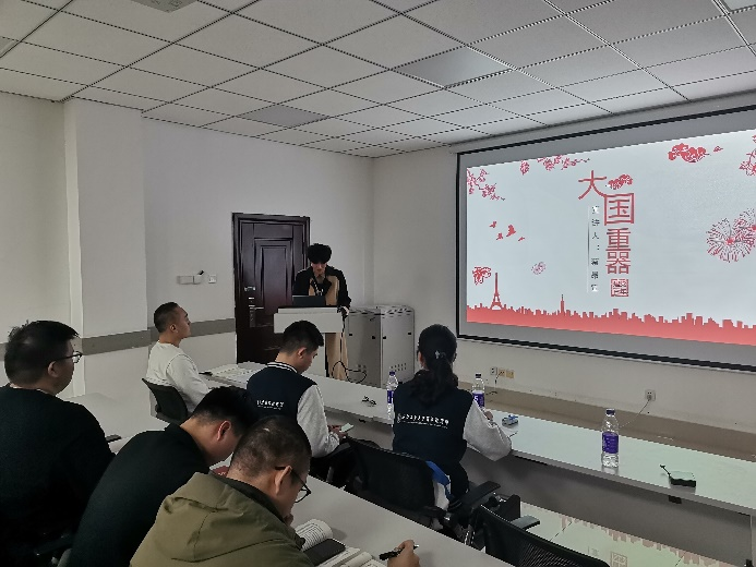 2019级公共政策与管理学院本科生蔡昂宣,以《国有器兮揽九天》为题,给大家介绍了大国重器的历史意义。蔡昂宣以我国航海技术的发展为例,从汉代的楼船、隋代的大龙舟、宋代的船坞,再到现代的辽宁舰、山东舰和蛟龙号,强调了大国重器在经济、军事和科技的重要地位,极大地鼓舞了党支部各位同志。