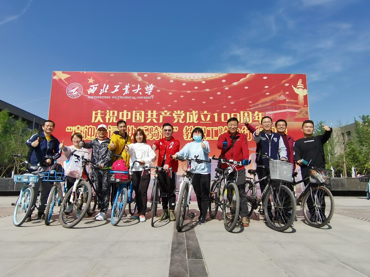 部门工会组织教职工参加由校工会主办的庆祝中国共产党成立100周年骑自行车郊游活动。