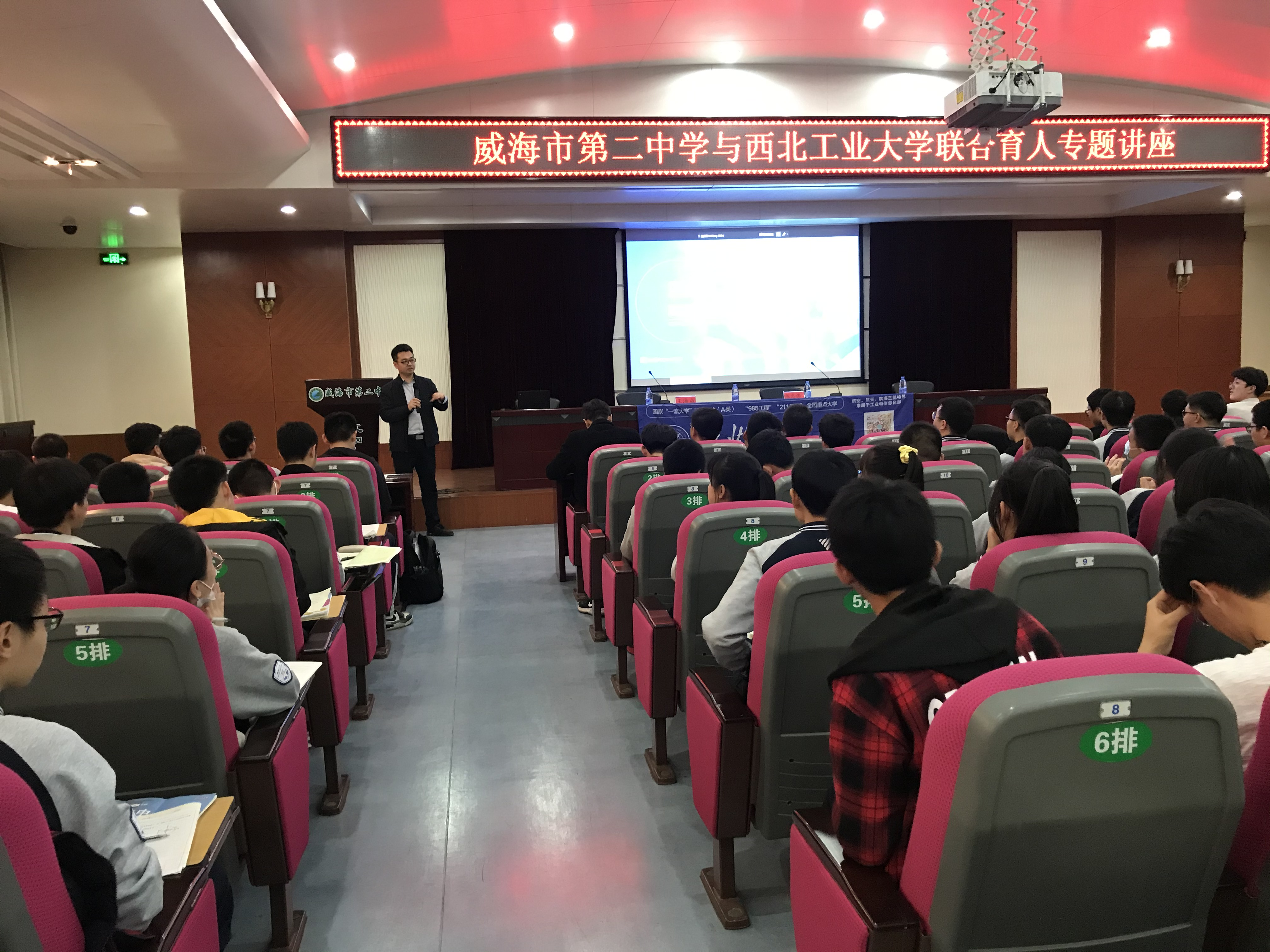 陈忠伟教授、黄斌副教授和伦敦玛丽女王大学工程学院张佳玉老师一行三人赴威海二中、威海一中开展科普讲座和招生宣传活动。