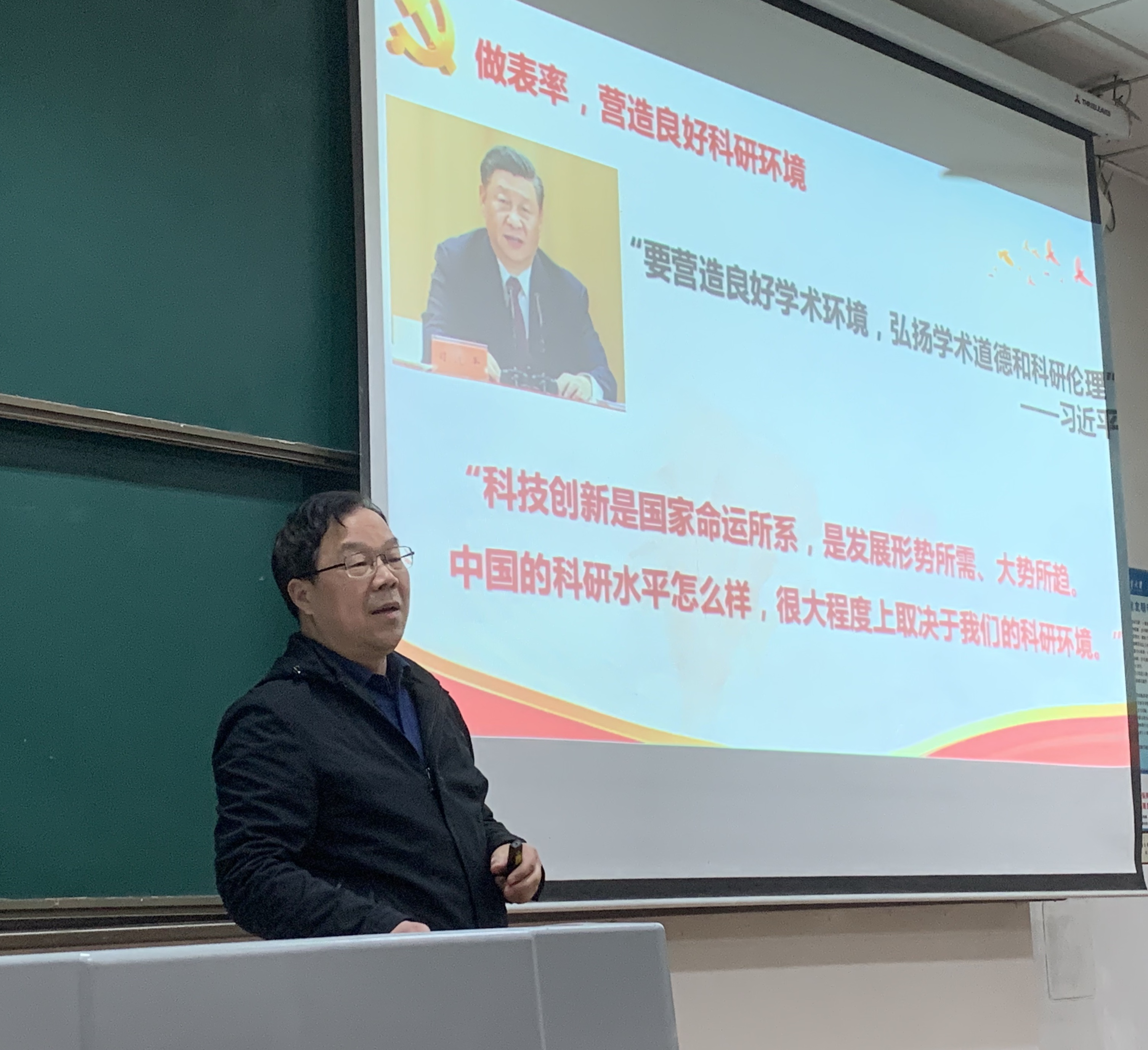 党委书记付前刚结合工作实际指出,诚信是科研人心中的标尺,也是党员时刻需牢记的红线。只有常怀敬畏之心,牢记肩上重任,不忘心中荣誉,才算合格的社徽人才。作为研究生,必须对自己的实验数据负责;作为师兄师姐,更要为师弟师妹们树立榜样。只有每位同学做好自己,国家才能有更好的学术环境,未来中国才能有更高的科研水平。