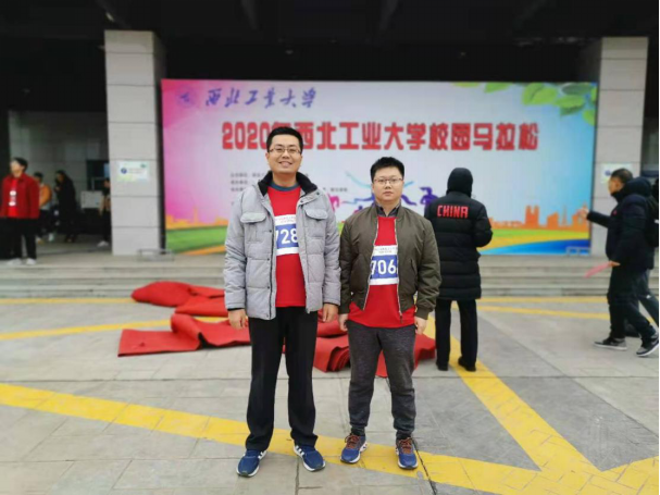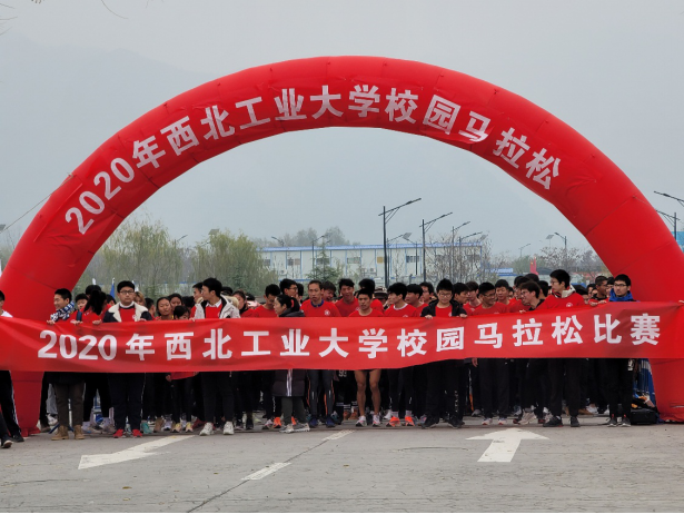 下午两点半,参赛师生在综合楼前列队集合,并在校健美操队的带领下进行热身。在简短的开幕式后,随着校党委副书记万小朋手中一声枪响,代表着西工大人不惧严寒,奋发图强的高昂斗志的九面西工大校旗一马当先,迎风招展地领跑在全程4.8公里的赛道上。2020年校园马拉松正式开跑了。