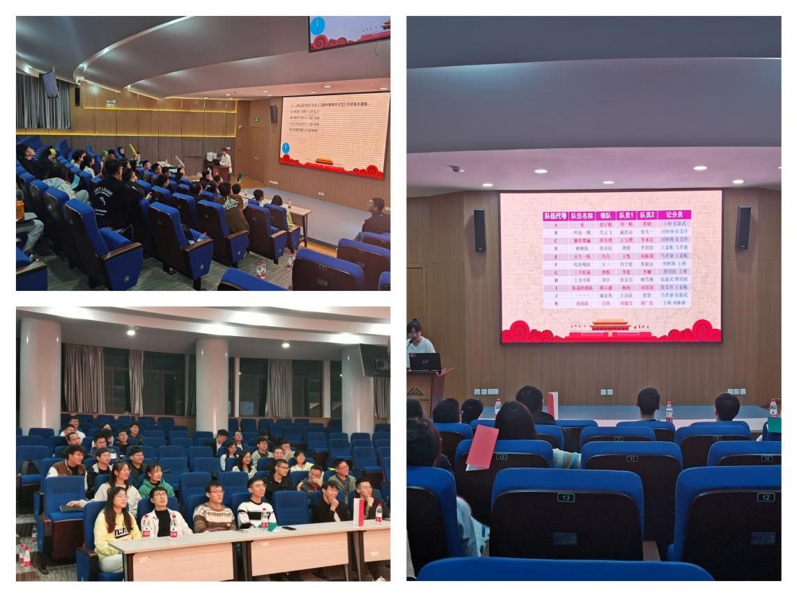 1115日晚700,本次“青春献礼二十大,强国有我新征程”学习党的二十大精神主题知识竞赛正式开始,首先主持人介绍了本次比赛的要求和规则并介绍了11支参赛队伍。本次比赛内容以党的二十大,党史等主要内容,同时增加了趣味题,疫情防控等相关题目,包括必答题、抢答题、加分题三大项。比赛过程中同学们积极抢答,奋进好学,经过激烈的角逐,最终由王宝熠、邵喜博、李承昊的队伍斩获第一名。