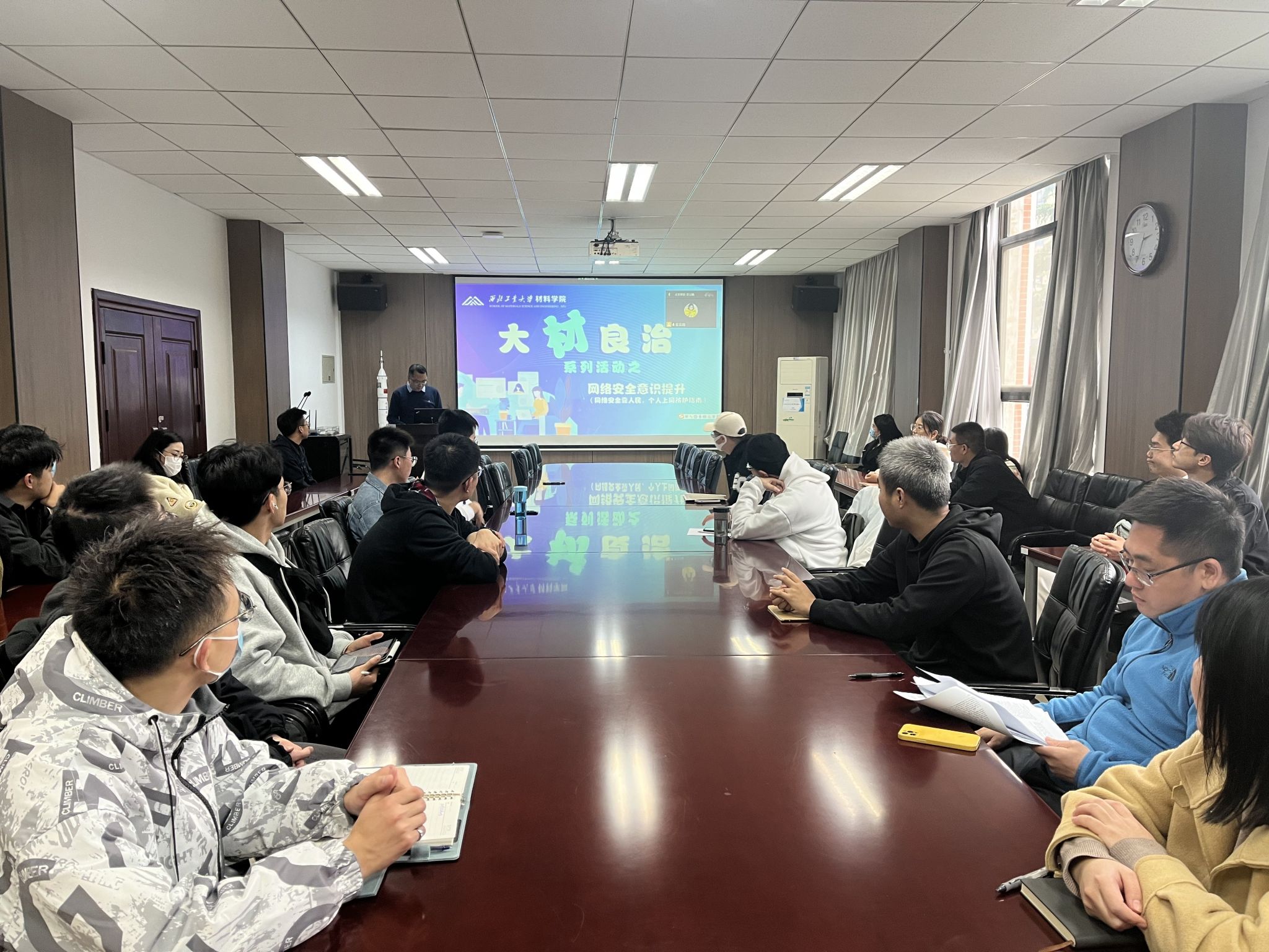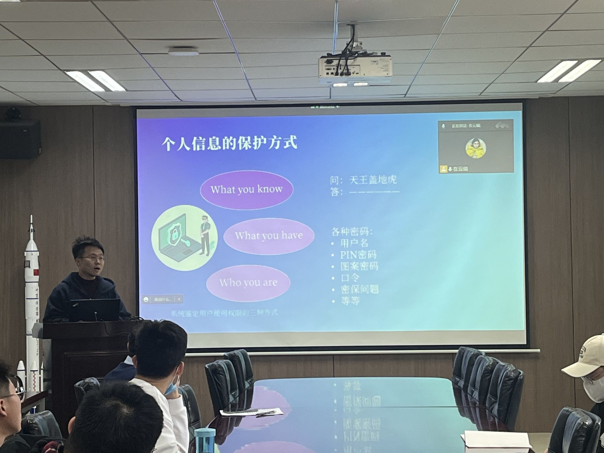 在读博士生张淋为大家进行计算机终端安全防护知识。张淋同学研究方向为计算材料学,作为课题组集群搭建人与负责人,熟悉集群系统的软硬件搭建与维护,在网络安全知识方面亦有广泛涉猎,2022年获得学校"网鼎杯"网络安全校园选拔赛二等奖。会议中,张淋从网络安全形势、法规和上级要求、影响危害以及安全防范措施等方面做了细致的讲解,并提醒师生要提高网络安全意识,做好个人终端防护,坚决做到“上网不涉密,涉密不上网”,避免数据泄露造成损失。