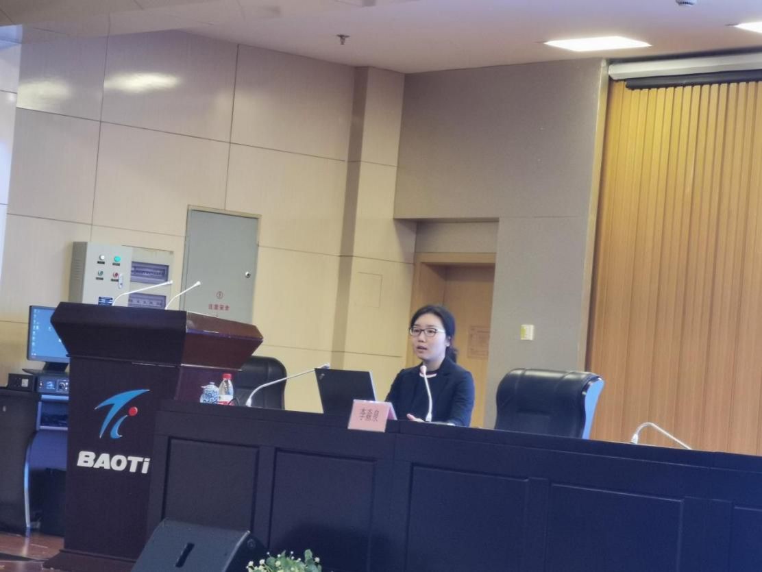 随后,支部教师李莲进行了钛基复合材料及其制备技术的分享,对钛基复合材料的发展概况及所在团队的研究进展进行了详细介绍。休息间隙,宝钛员工与支部教师李莲针对钛基复合材料进行了友好的科研交流。