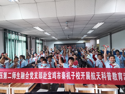 锻压第二师生融合党支部副书记白丹妮、宣传委员赵盼娣、统战委员闫星港等一行9人赴陕西省宝鸡市秦机子校开展航空航天科普教育活动。秦机子校党支部书记彭延俊、党员李永琴、毛婷、赵军峰等相关同志参加了本次活动。