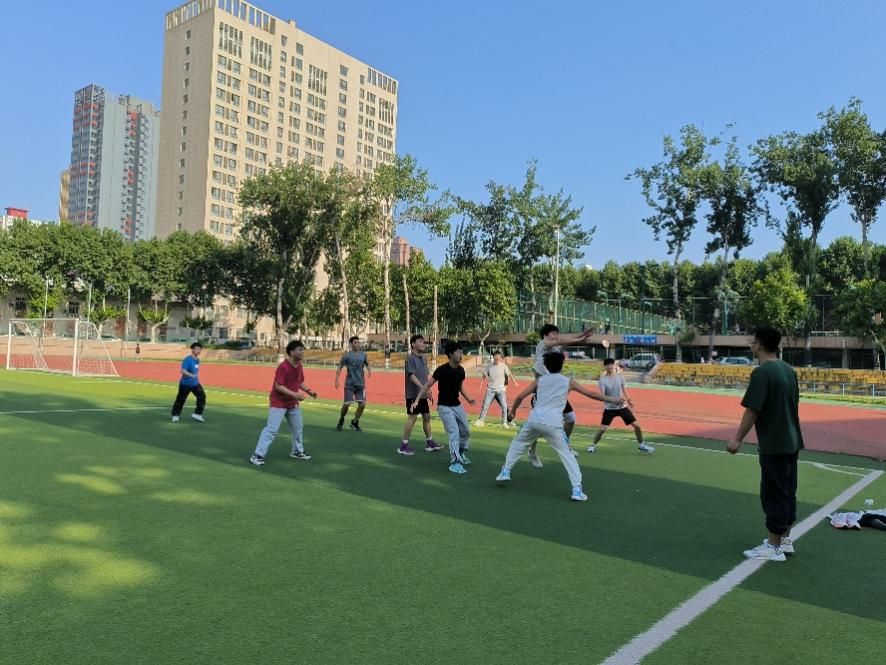 接下来是团队赛,八支党支部参赛队伍采取现场抽签分组的形式,分为四组进行晋级赛,每个支部由五名选手组成,成功传递沙包至得分区则得一分。比赛开始后,选手们在绿茵场上挥洒汗水,场外观众热情呐喊,现场加油助威声此起彼伏。在三轮激烈比拼中,陶瓷材料研究生党支部以出色的团队协作能力、顽强的拼搏精神最终获得冠军,铸造第二研究生党支部、锻压材料第二研究生党支部、金属材料第一研究生党支部分别获得二、三等奖。