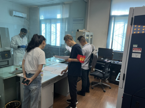 院长助理孙佳,学院教师孟园园、乔彦强、王红月、李根再及学生安全助管等一行组成检查组对学院材料科技大楼A/B座、凝固楼、研究生东馆、公字楼、现代集成实验室、材料分析研究中心等相关实验室进行了全面安全生产大检查。
