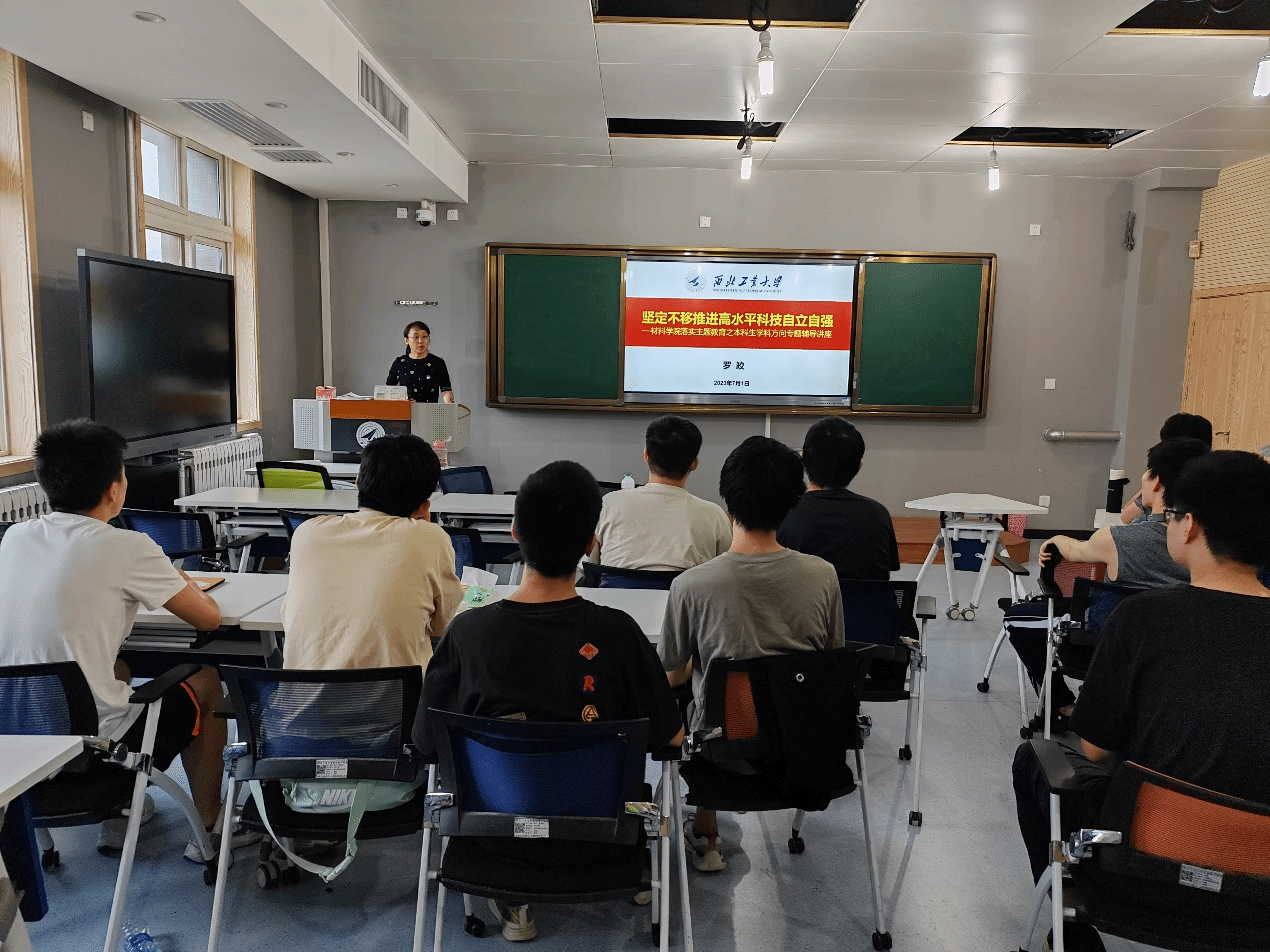 罗皎首先介绍了党的二十大报告中习近平总书记关于“加快实现高水平科技自立自强”的重要论述,尤其是党的二十大报告首次对教育、科技、人才“三位一体”进行部署,体现了习近平总书记对夯实高水平科技自立自强根基的深刻洞察和战略考量。罗皎表示,我院的本科生作为航空航天事业和国防科技工业的未来生力军,要夯实学科基础知识,学好弄懂《材料科学基础》、《材料热力学》和《金属热处理》等专业核心课程。