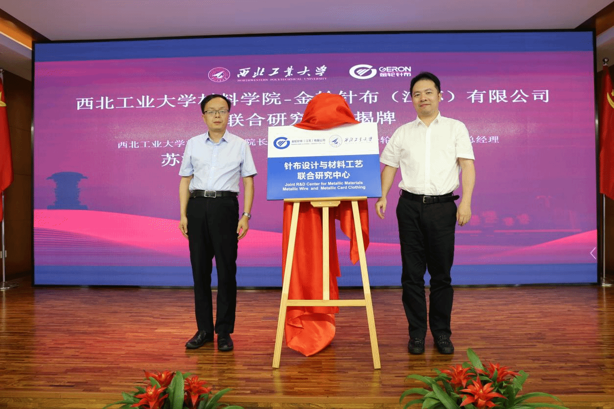 副院长苏海军、院长助理杨勇、教授李付国、冯丽萍、陈忠伟,学校科研院产学研办公室主任李源,物产中大实业公司党委副书记、总经理、物产金轮党委书记、董事长郑光良,物产金轮党委副书记、总经理汤华军,物产金轮党委委员、副总经理高誉以及企业技术骨干100余人等出席签约揭牌仪式。仪式由金轮针布(江苏)有限公司总经理黄宏兵主持。