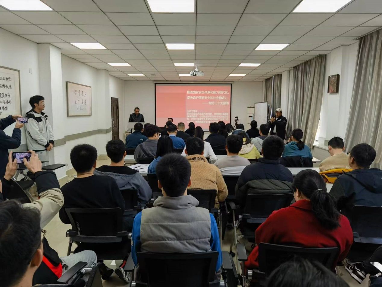 黄斌从全球安全大环境导入,讲述了国家安全的内涵和重要性,并结合俄乌冲突形势,简要分析了当今复杂的国际安全形势和我国面临的严峻的国家安全形势。他表示,与世界各地波诡云谲的环境相比,中国人民处在相对安定、相对幸福的环境中。在中国共产党的英明领导下,中国人民倍加珍惜当前的安全窗口期、战略机遇期、全面赶超期,正发愤图强、阔步前进。