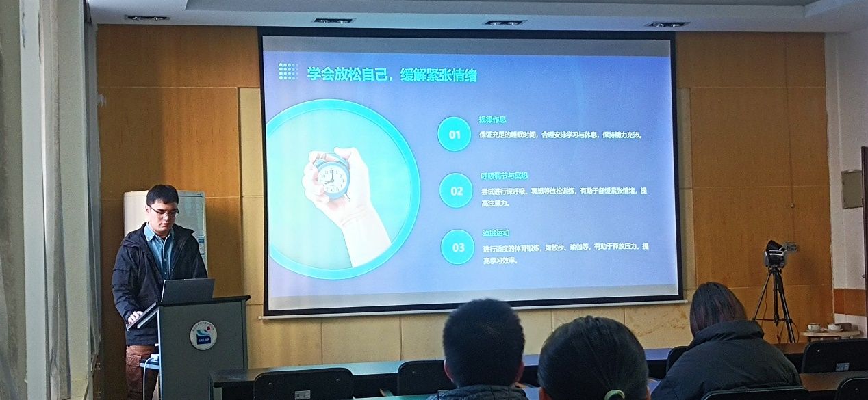 第三位闫智聪同学简洁明了的给大家介绍了在考试过程中各科目需要注意的关键点,同时为大家介绍了相关的一些复习资源,例如微信公众号和bilibili上的一些资源等,在轻松有趣的氛围下,用较少时间掌握了很多知识点干货。他提出在最后的做题冲刺时,一定要抓大放小,该拿到的分一定要拿到。同时,现阶段应充分利用碎片化时间,对当天的复习内容进行回顾和反思。最后指出,在最后一个月里,一定要调整好心态,锻炼好身体,保持自己的自信心,相信自己一定能行。
