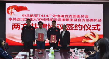 党委副书记罗皎带队,学院焊接师生融合党支部一行11人赴航天四院7414厂开展支部共建与合作交流,支部书记杨夏炜与7414厂外协研发党支部书记王秉祥代表双方签署了联学共建协议。
