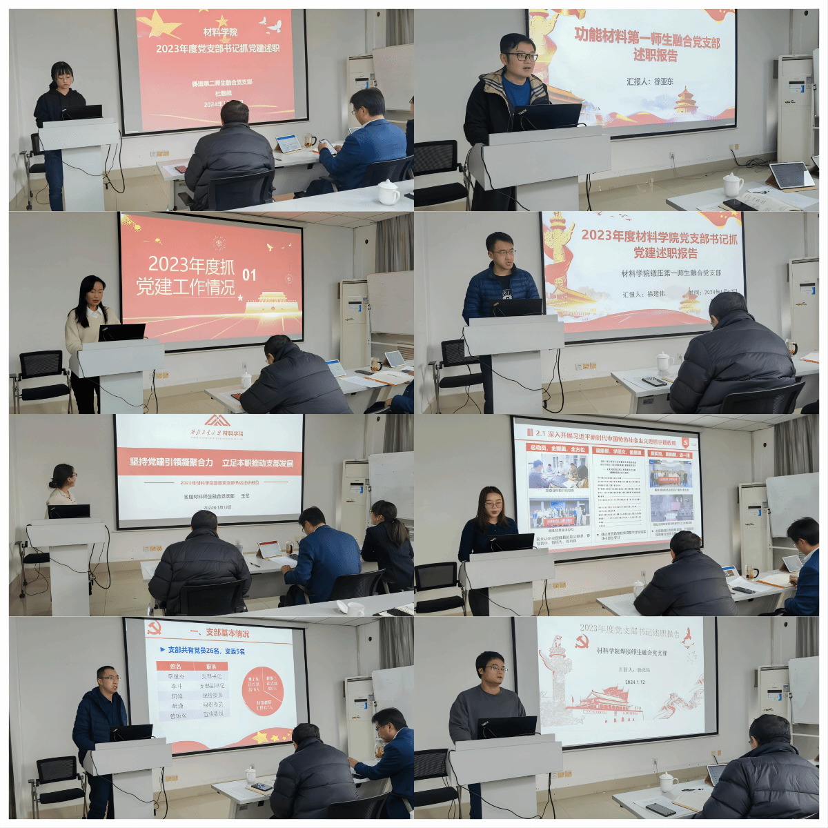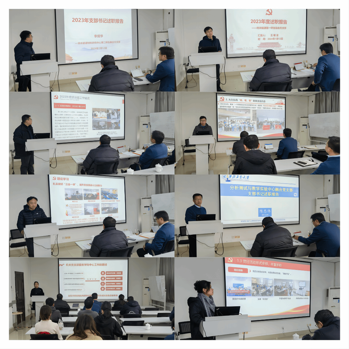 会上,16名教职工党支部书记、20名学生党支部书记围绕深入学习贯彻党的二十大精神、主题教育开展情况、落实基层党建工作重点任务、强化党支部政治功能和组织功能、党员发展和教育管理以及推动中心工作等六个方面进行了述职。同时,分析了当前工作存在的问题与不足,提出了2024年度的工作思路和改进举措。