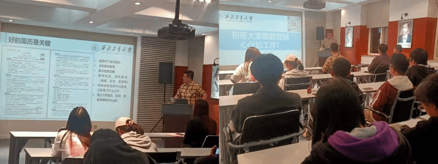 张杰克书记向师弟师妹们进行了就业经验分享,从简历投递、就业信息查询和面试角度细致入微进行了分享,为大家指明了工作道路;罗豪杰师兄向大家分享了出国留学经验,从雅思考试、学校申请等方面为大家进行答疑。
