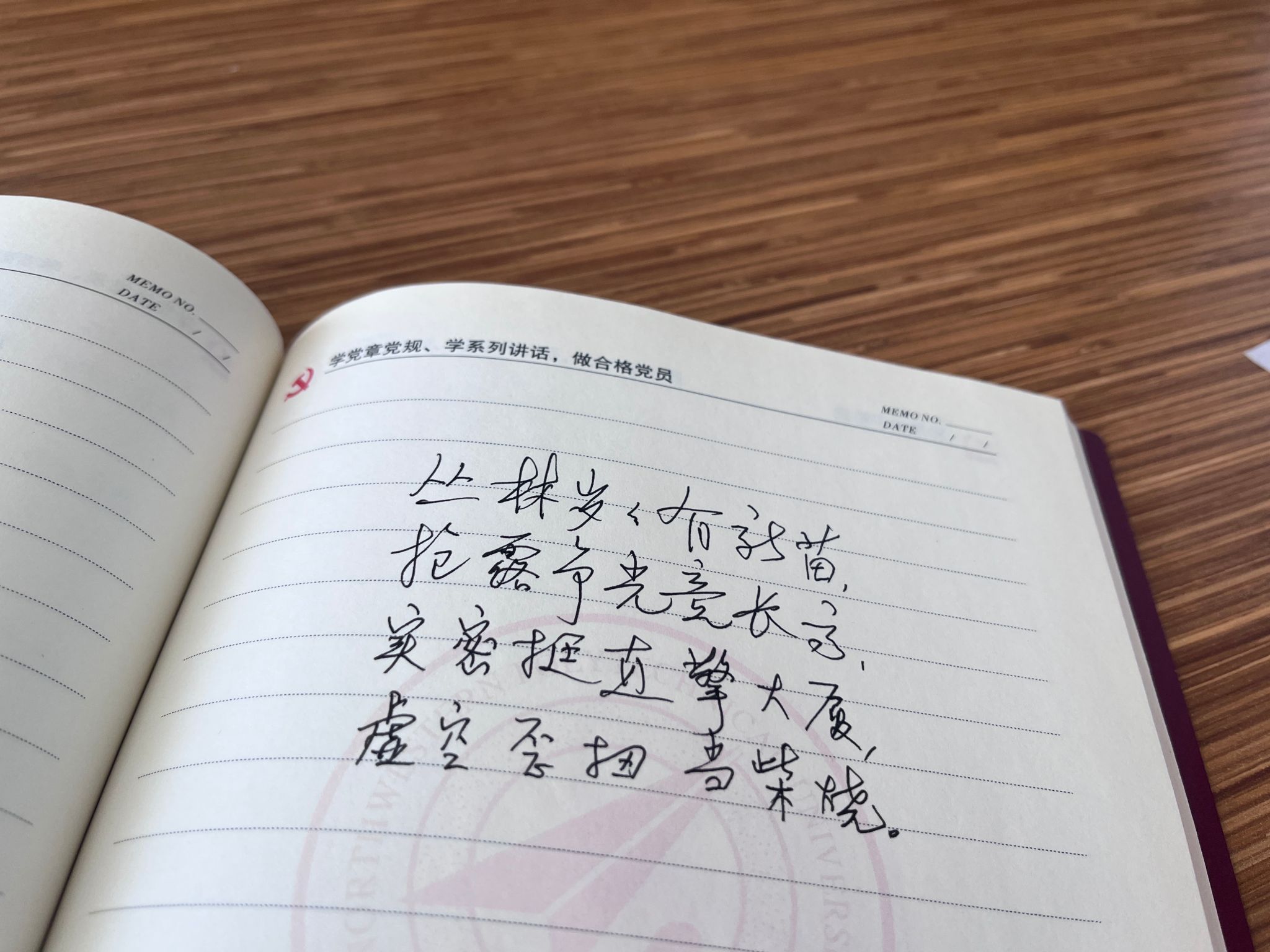 在访谈过程中,周老师结合自己的个人经历、讲述了自己在科研方向选择、科研成果转化和教书育人实践等方面的一些感悟和思考。在访谈的最后,周老师即兴赋诗一首,寄语青年学子:“丛林岁岁有新苗,抢露争光竞长高。实密挺直擎大厦,虚空歪扭当柴烧”,鼓励青年学子围绕“总师型”人才的培养目标,持续发扬“三实一新”校风,面向国家需求,不断开拓创新。