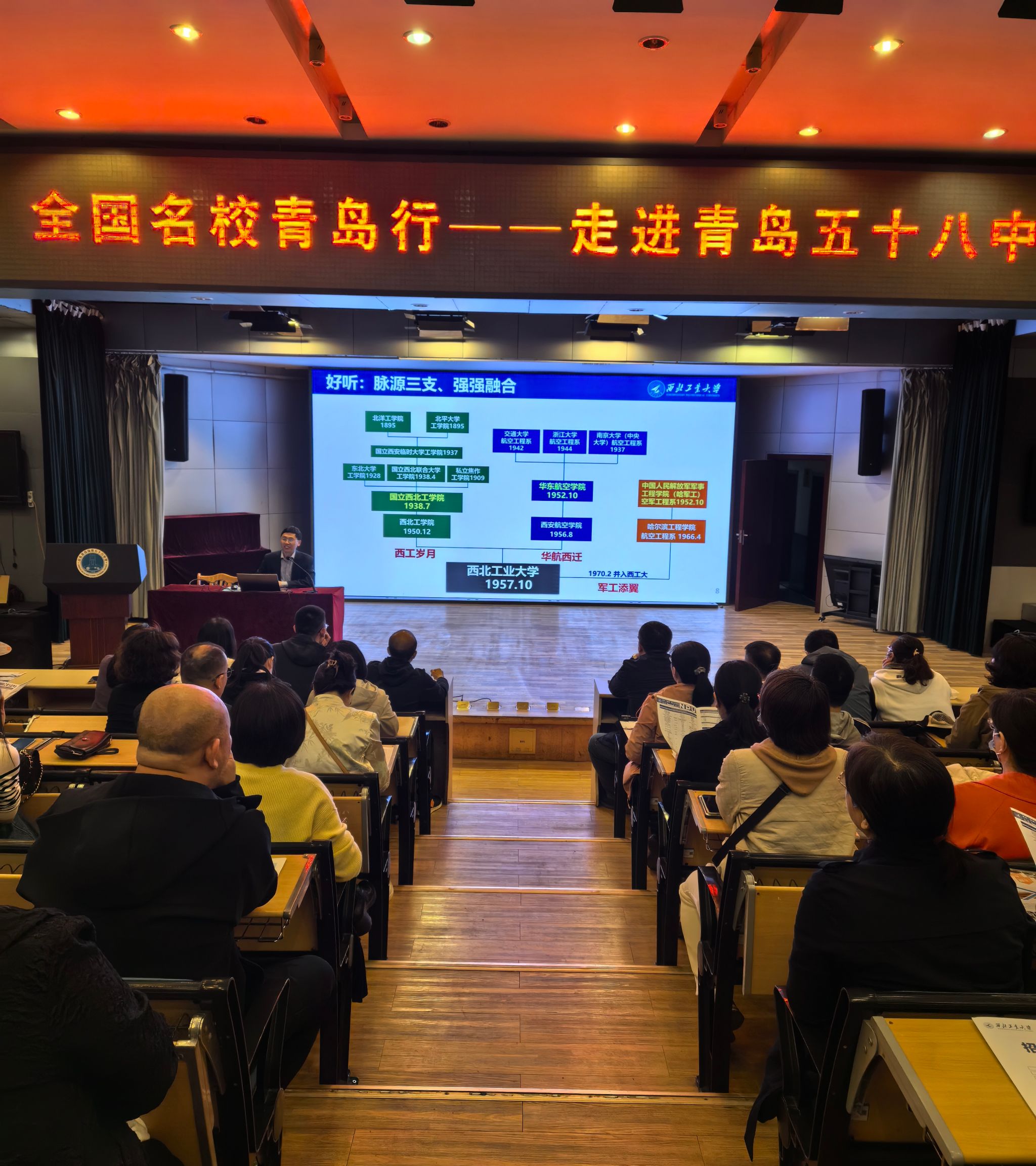 在山东青岛五十八中,付前刚向高三学生家长介绍了学校和学院基本情况、办学特色和优势专业,学校招办相关业务负责人李佩就西工大招考目录、招生政策和强基计划做了解读,做爱色情片