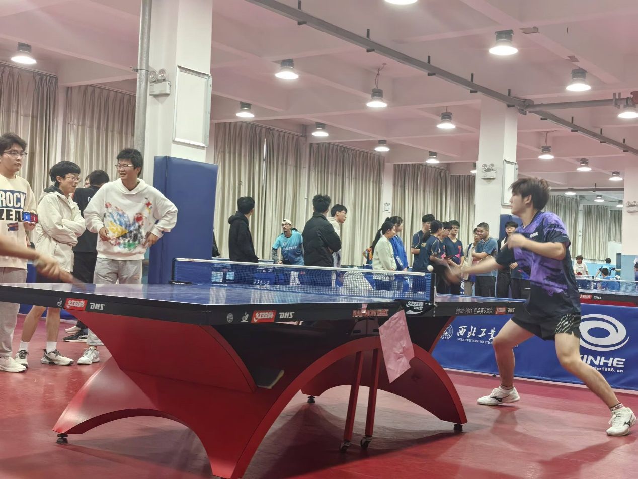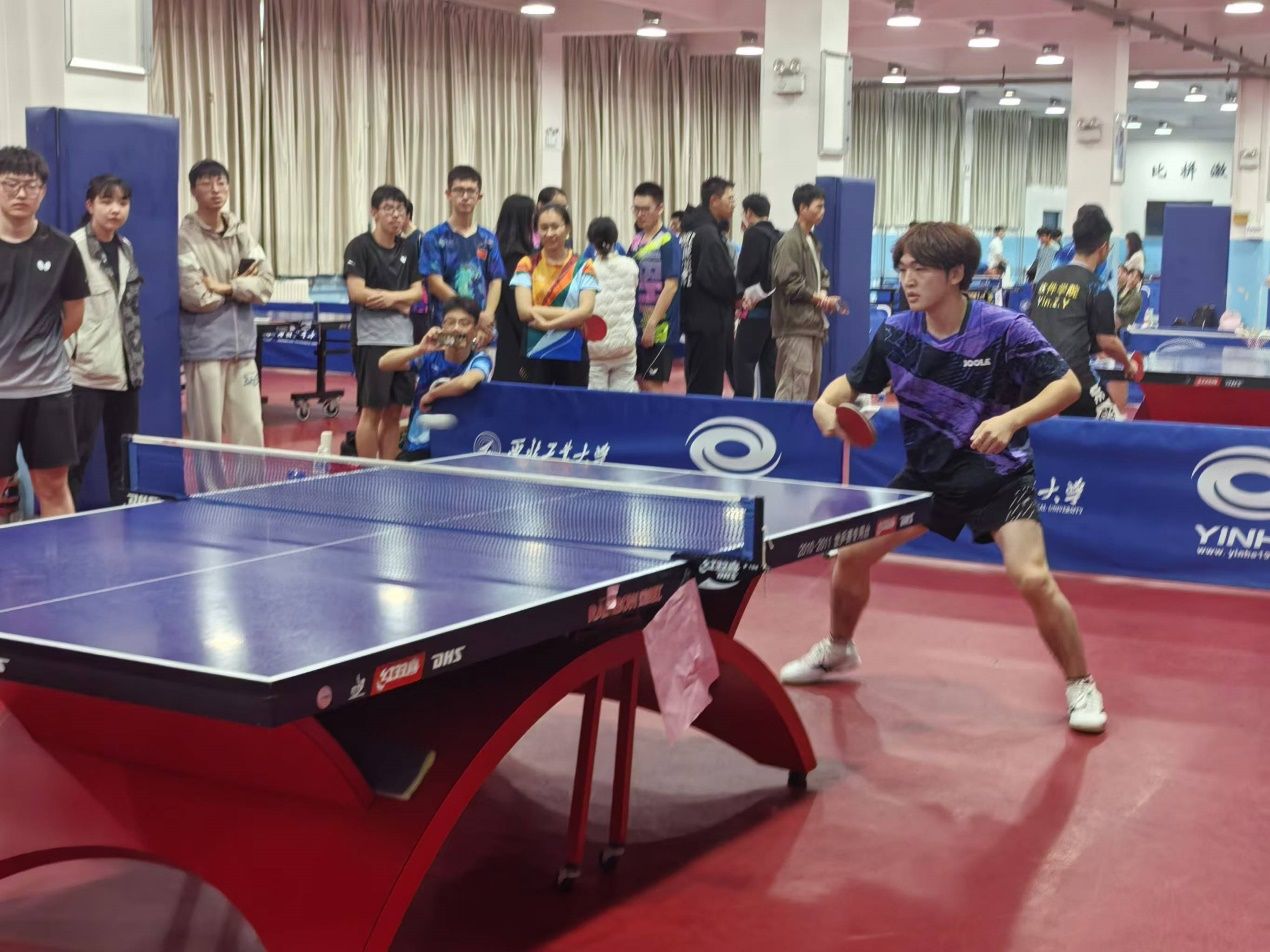 在乒乓球比赛中,我院队伍在淘汰赛中打败教改学院和自动化学院,跻身季军。团队永不言弃的体育精神深深感染了现场的观众。