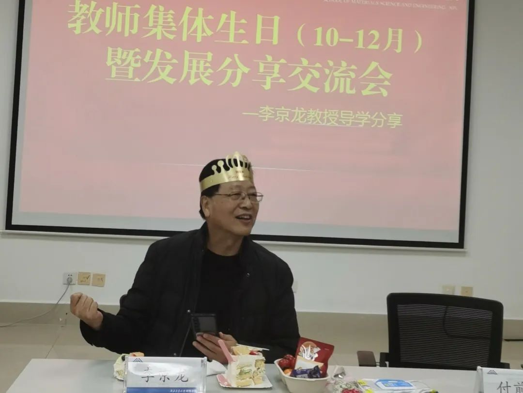 在轻松快乐的氛围中,伴随着温馨柔和的音乐,大家一起唱响生日歌,品尝美味蛋糕,相互祝福。随后,李京龙教授分享了教学、科研经历及导学经验。