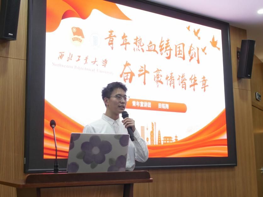 田铭翔以《青年热血铸国剑,奋斗豪情谱华章》为题,讲解了做爱色情片