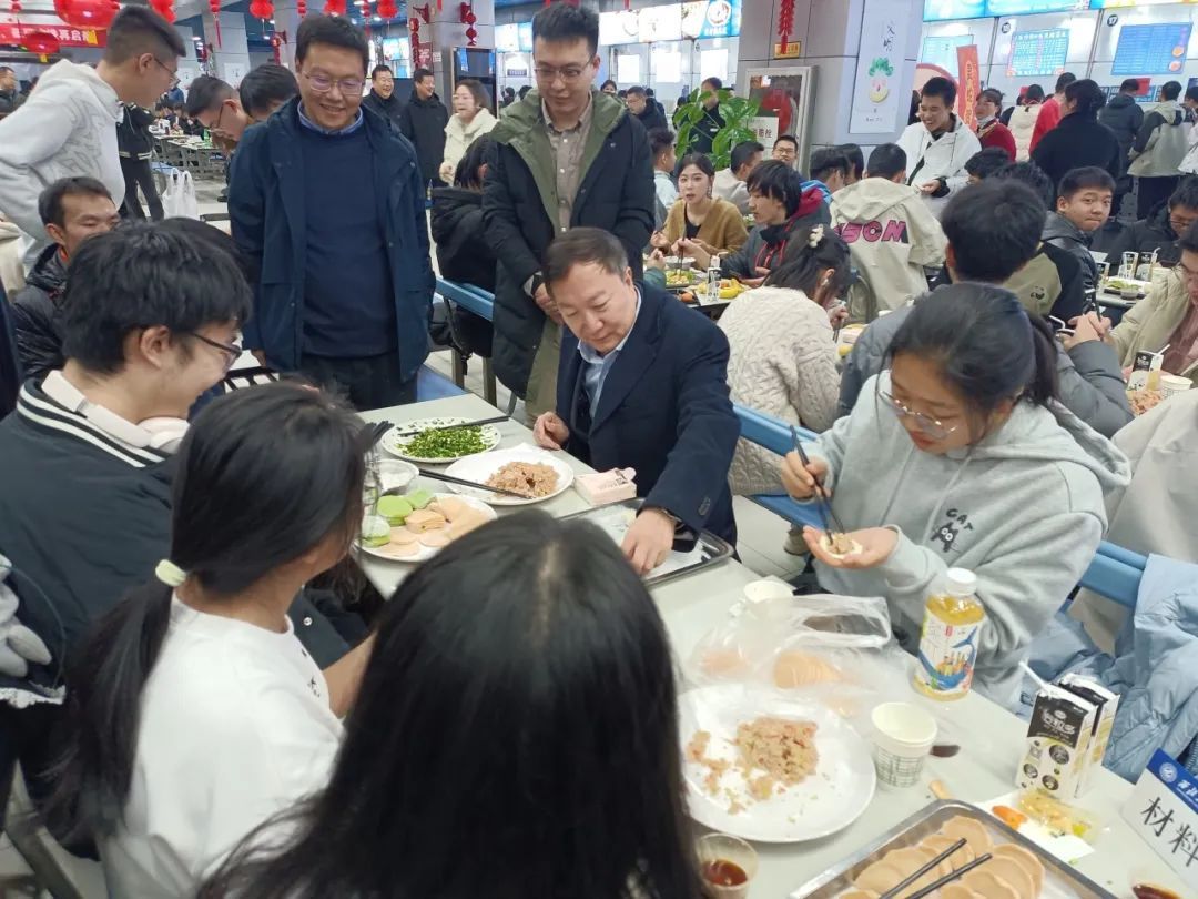 院长付前刚、副院长罗皎、党委副书记禹亮、院长助理兼团委书记孙磊等与师生欢聚一堂,共同展示手艺,品尝美味。在“谁与争锋”竞速包饺赛中,大家各显神通,饺子包得又快又好,为这场水饺宴增添了几分趣味。在“选美大赛”最美饺子评比环节,每个饺子都独具匠心,展示了精湛的手艺。热气腾腾的饺子出锅后,师生们围坐一起,共享这份温馨与喜悦,感受浓浓的新年气息和学院大家庭的温暖。