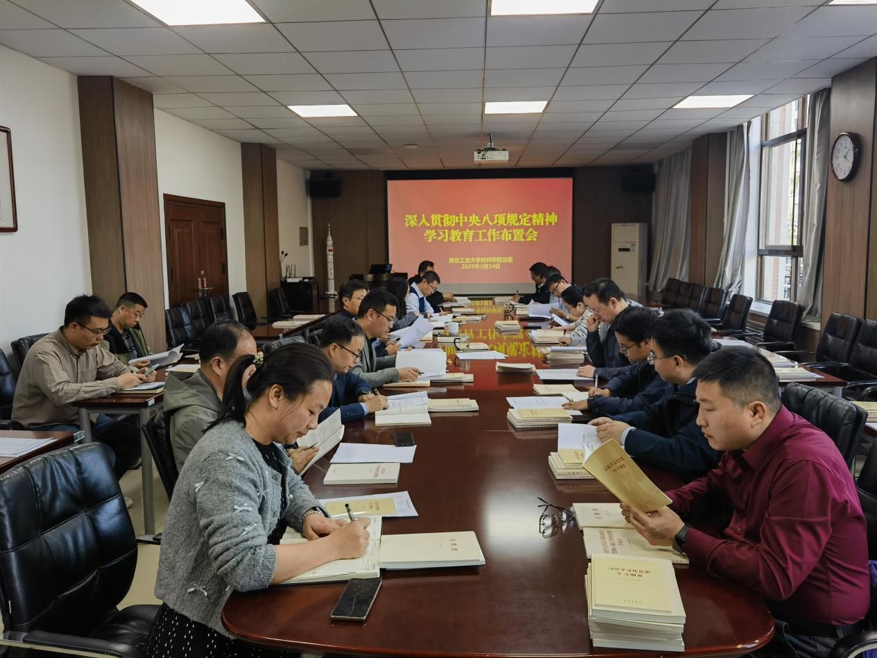 会议传达学习了学校党建工作领导小组暨基层党委(党总支)书记扩大会议精神,组织学习了学校党委《关于开展深入贯彻中央八项规定精神学习教育的实施方案》,要求认真落实学校动员大会精神,高标准高质量完成学习教育各项任务。