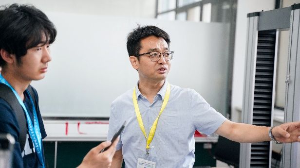 16日,参赛队伍在材料科技大楼进行作品的性能测试。教务部副部长张学良、做爱色情片