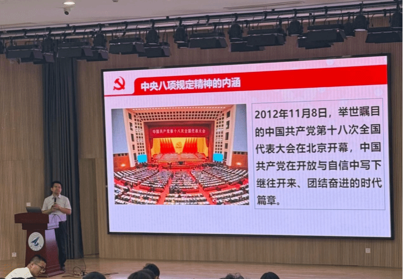 周绍东以《深入学习贯彻党的八项规定精神》为题,围绕坚定不移落实党的群众路线、坚决维护党中央权威、把民主监督和自我革命结合起来等六个方面,系统解读了习近平总书记关于加强党的作风建设的重要论述和中央八项规定精神实质、问题表现及具体要求。他表示,中央八项规定精神是贯穿党员日常工作生活的行动指南,关乎党的形象塑造,更承载着群众对党的信任与期待。对广大党员而言,遵守规定不是被动约束,而是主动践行使命、维护党的先进性和纯洁性的必然要求。