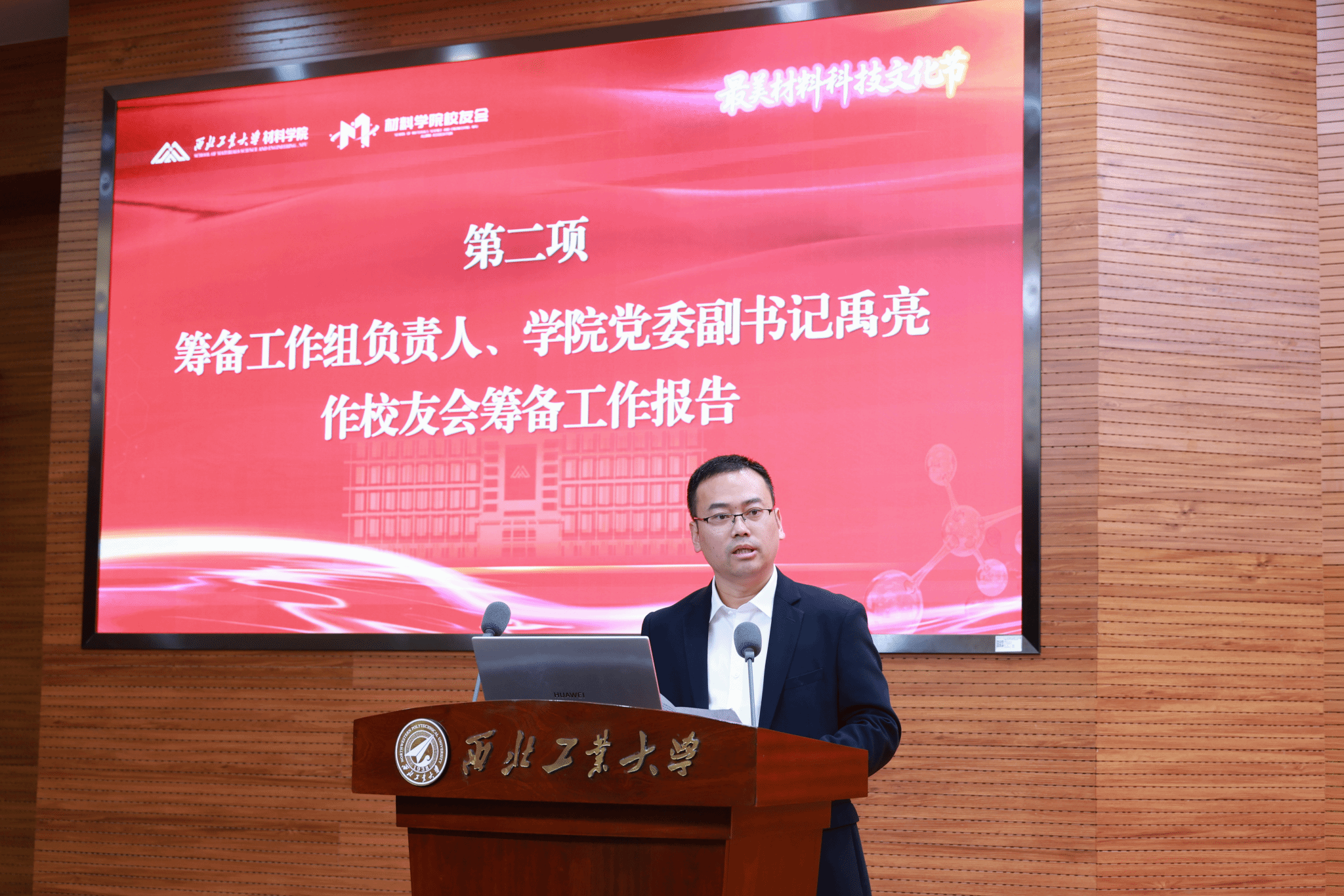 折生阳作为校友代表发言。他深情回顾了在母校的求学岁月,分享了创业历程,表达了对校院深切的感激之情和反哺之意。近日,折生阳暨华秦科技公司向学校捐赠1亿元,支持人才培养、科学研究和材料学科建设。