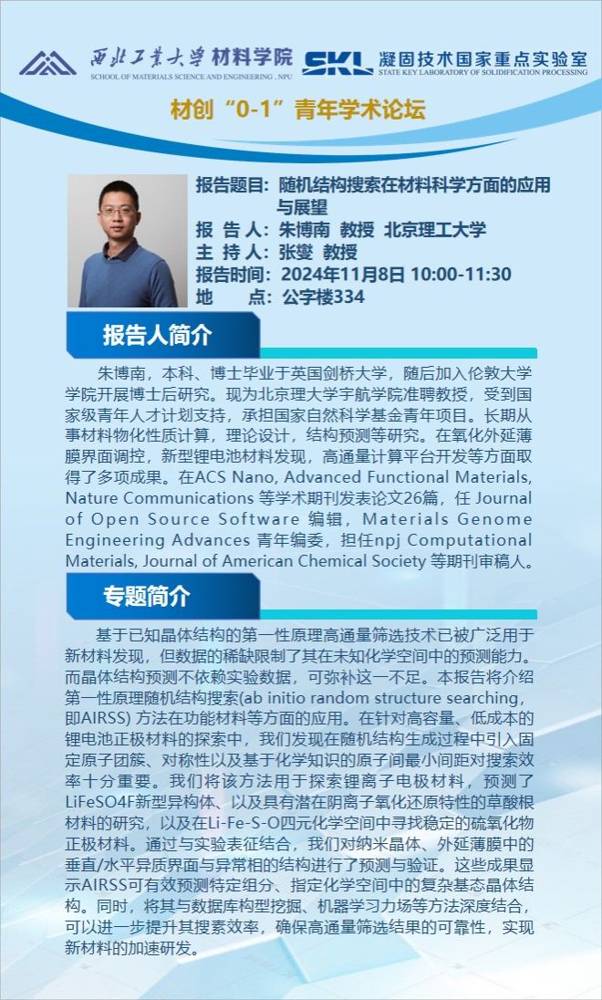 材创“0-1”青年学术论坛:随机结构搜索在材料科学方面的应用与展望