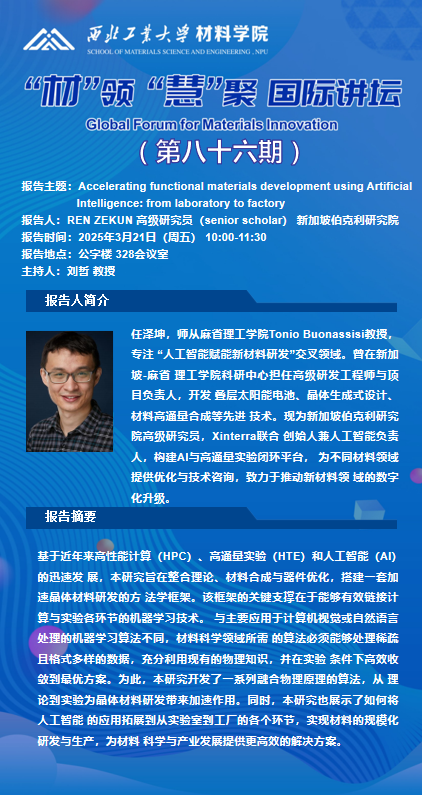 国际讲坛:Accelerating functional materials development using Artificial Intelligence: from laboratory to factory