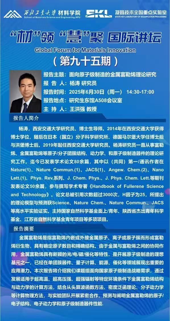 报告主题:面向原子级制造的金属富勒烯理论研究