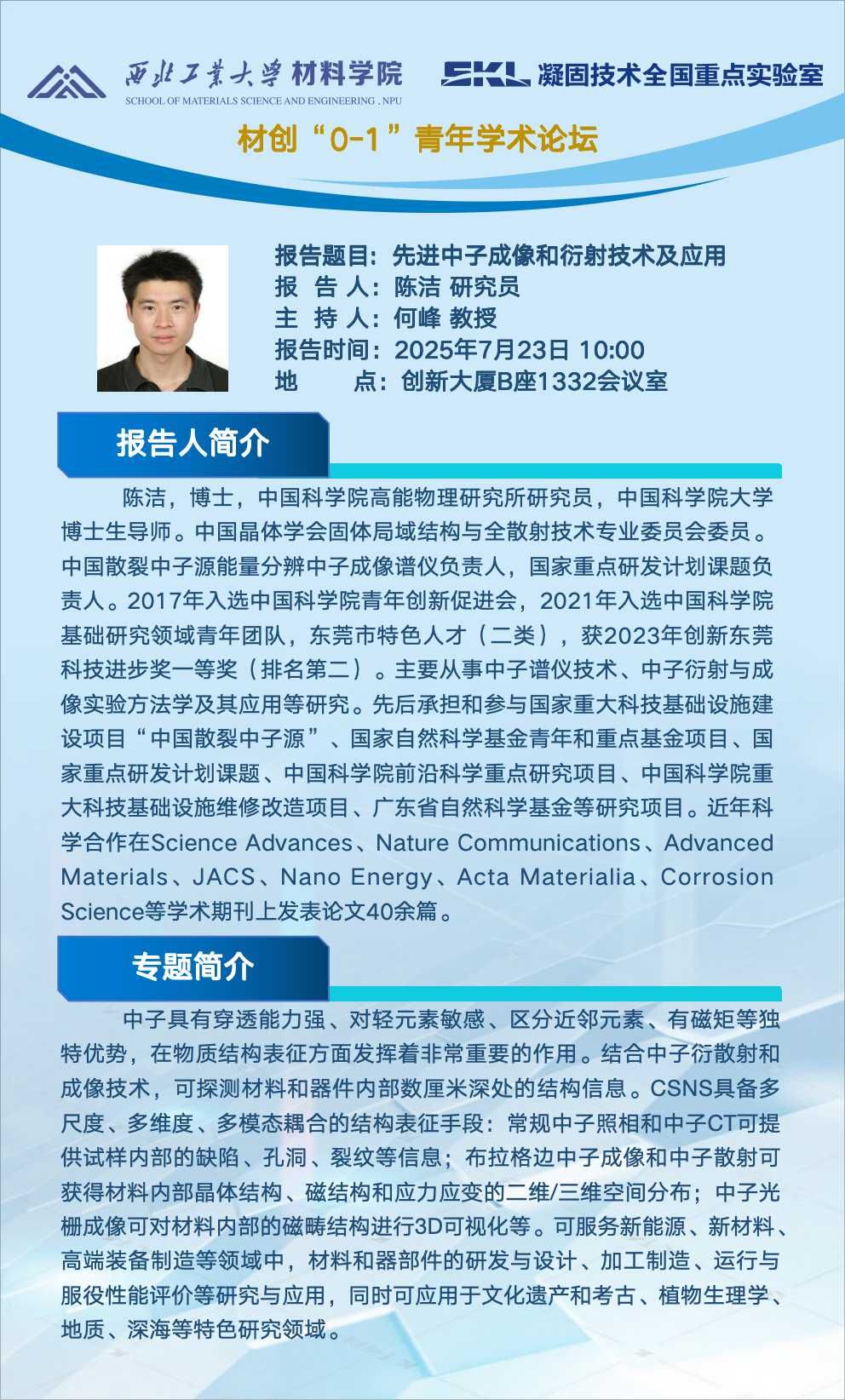 材创“0-1”青年学术论坛:先进中子成像和衍射技术及应用