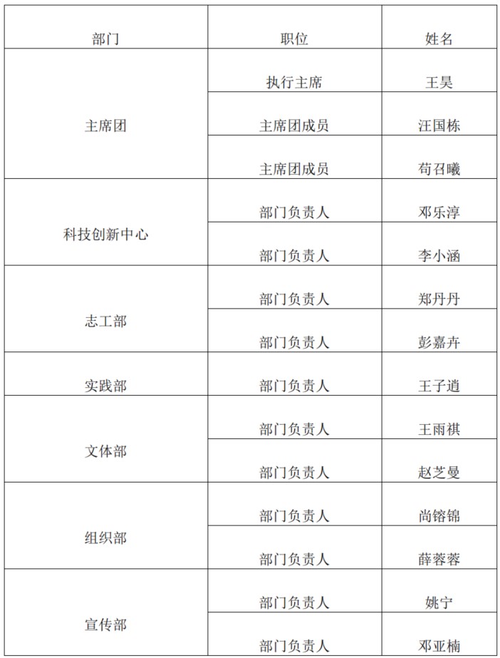 研究生会干部人选。详细结果见下表。