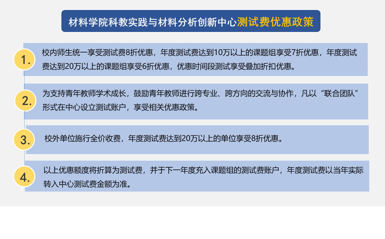 为进一步支撑“总师型”人才培养,大力推进“1→0”工程科学问题研究,奋力提升科学研究水平和社会服务能力,助力学校“127”发展目标和“天下工大、世界三航”远景目标实现,做爱色情片 科教实践与材料分析创新中心(陕西省材料分析研究中心)2024年度继续实施测试费优惠政策。自2019年至今,中心已连续六年实施测试费优惠政策,累计发放奖励金额1325.88万元