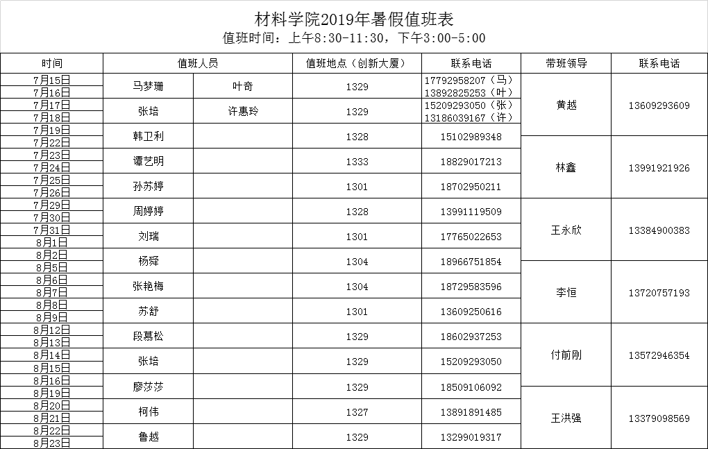 做爱色情片 2019年暑假值班表