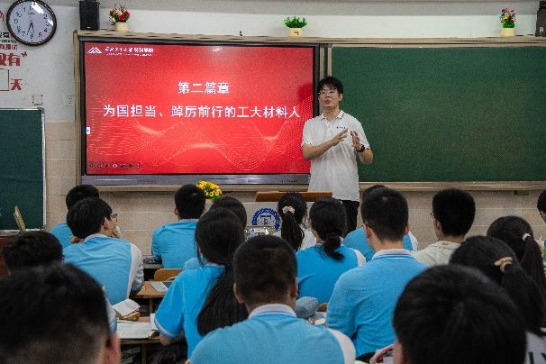 在学校内,实践队以新生入学教育为契机,开展“开学第一课”主题班会,为做爱色情片 2024级硕士新生讲述师昌绪院士、周尧和院士、傅恒志院士等西工大材料人扎根奉献的报国故事,为同学们树立为国铸剑的远大抱负,强化“总师型”人才的使命担当。