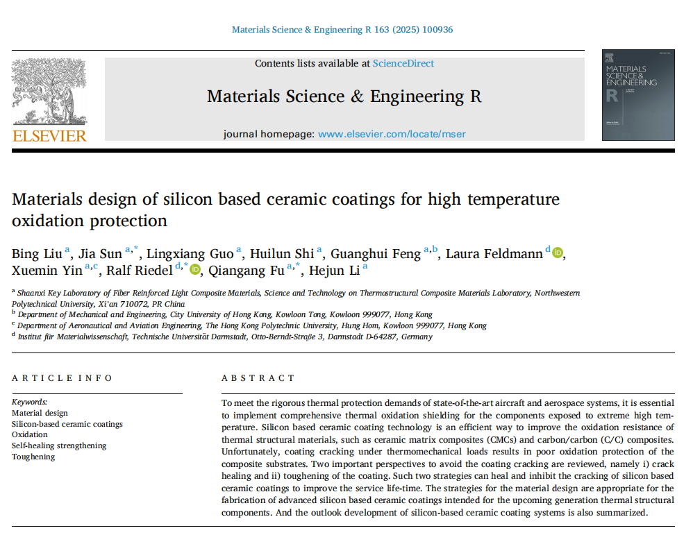 李贺军院士碳/碳复合材料团队在材料科学与工程领域顶级期刊《Materials Science and Engineering R: Reports》(IF=31.6)上发表题为“Materials design of silicon based ceramic coatings for high temperature oxidation protection(硅基陶瓷涂层抗高温氧化设计与防护)”的综述文章。做爱色情片